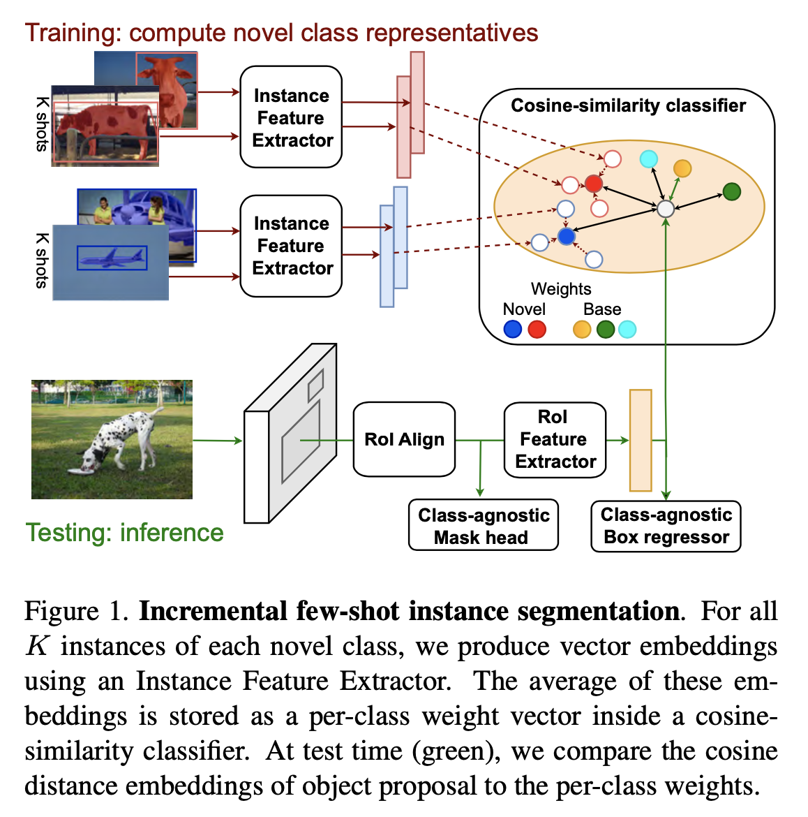 1) the first incremental few-shot instance segmentation method: iMTFA which outperforms S.O.T.A for FSIS and incremental FSOD.